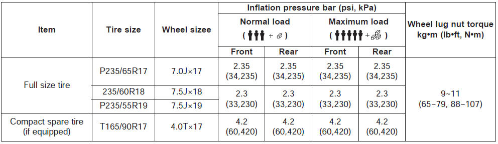 When replacing tires, use the same size originally supplied with the vehicle. Using tires of a different size can damage the related parts or make it work irregularly.