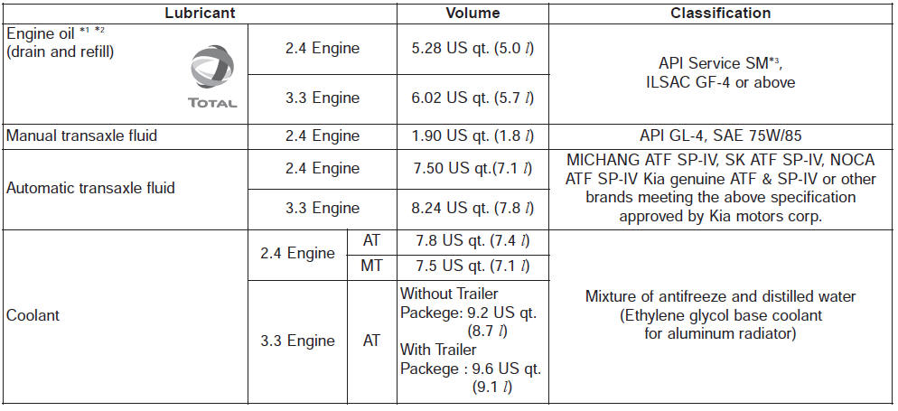 1. For better fuel economy, it is recommended to use the engine oil of a viscosity grade SAE 5W-30 (API SM / ILSAC GF-4). However, if the engine oil is not available in your country, select the proper engine oil using the engine oil /viscosity chart.