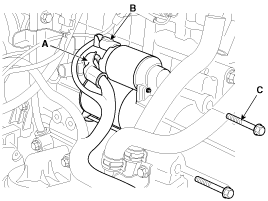 Remove the 2 bolts (C) holding the starter, then remove the starter.