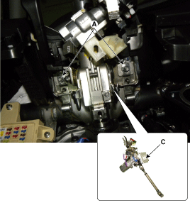 Loosen the bolt (A) and then disconnect the universal joint assembly