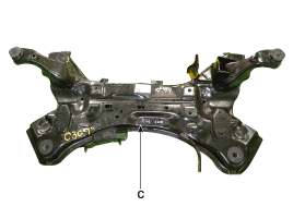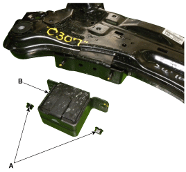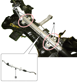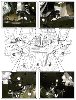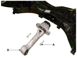 Loosen the nut (A-2ea) and then remove the sub frame damper (B).
