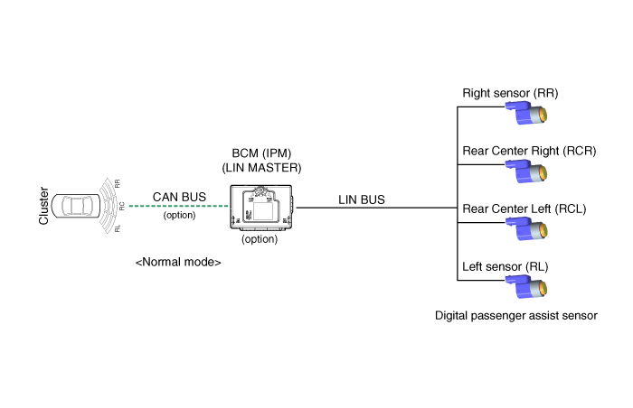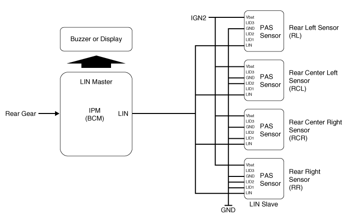 alarm device as like buzzer. RPAS sensor sends data to BCM with LIN communication