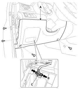 Push the lock pin (B), disconnect the diagnosis connector (C).