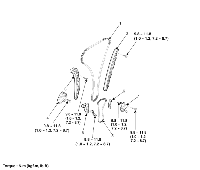Kia Sorento: Timing Chain Components - Timing System - Engine Mechanical System - Kia Sorento XM 2011-2025 Service ManualKia Sorento: Timing Chain Components