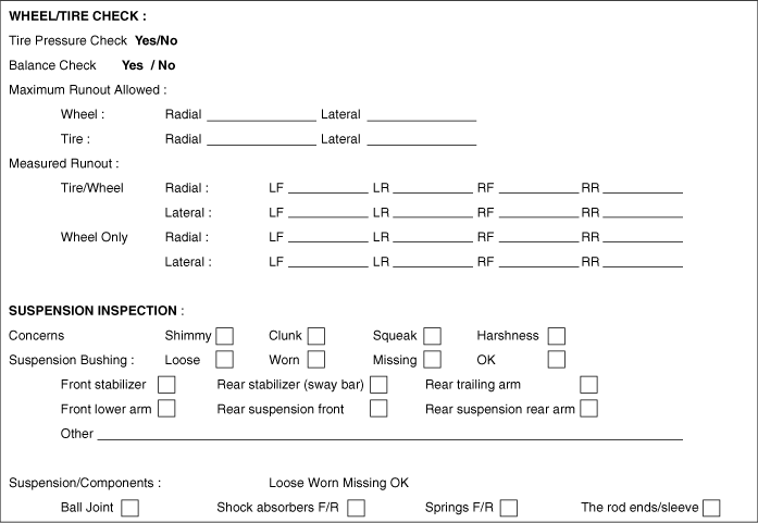 necessary. Inspect for damaged/worn suspension components. Perform wheel