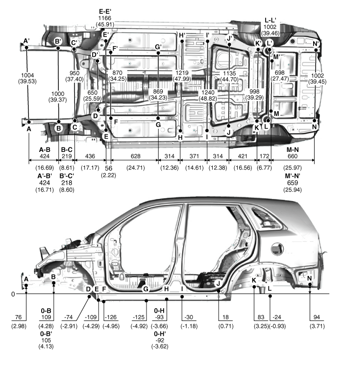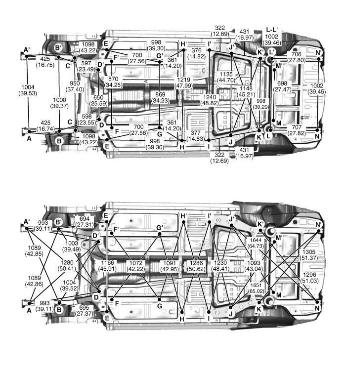 Second Generation XM (2011-2025) / Kia Sorento XM 2011-2025 Service Manual / Body (Interior and Exterior) / Body Dimensions / Under Body (2WD)