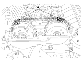 Mark the timing chains (A) on the timing marks of the CVVT sprockets.