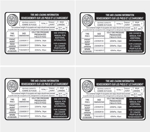 The label located on the driver's door sill gives the original tire size, cold tire pressures recommended for your vehicle, the number of people that can be in your vehicle and vehicle capacity weight.