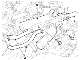 Disconnect the E.T.C cooler hose (A) and the remove the water temperature